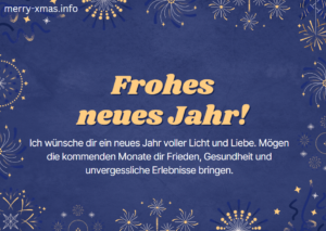 - Ich wünsche dir ein neues Jahr voller Licht und Liebe. Mögen die kommenden Monate dir Frieden, Gesundheit und unvergessliche Erlebnisse bringen.