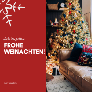 „Frohe Weihnachten, liebe Schwiegermama und lieber Schwiegervater! Eure Gastfreundschaft und eure Freundlichkeit sind für uns ein großes Geschenk. Ich wünsche euch ein festliches und frohes Weihnachtsfest voller Freude und Liebe.“